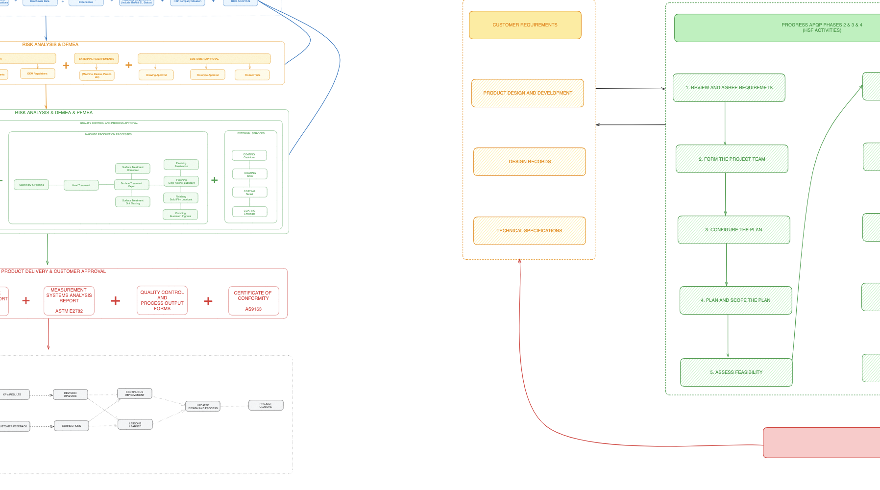 HSF QMS defines the Advanced Product Quality Planning (APQP) and Production Part Approval Process (PPAP) terms in accordance with the AS9145 standard. According to the APQP, the process has five phases, starting with conceptual product needs and extending throughout the product life cycle. These phases are described as follows: